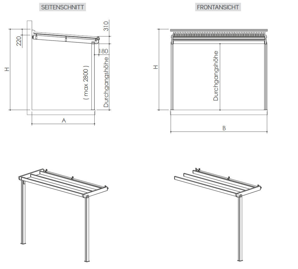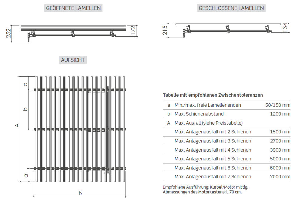 Ein einzigartiges und innovatives Überdachungssystem mit Aluminiumlamellen und speziellen Führungsschienen, das bei geschlossenen Lamellen vor Regen und Sonneneinstrahlung schützt. Sein elegantes Design ist die ideale Lösung für verschiedene Bereiche: Terrassen, Pergolen, Pavillons und Veranden.