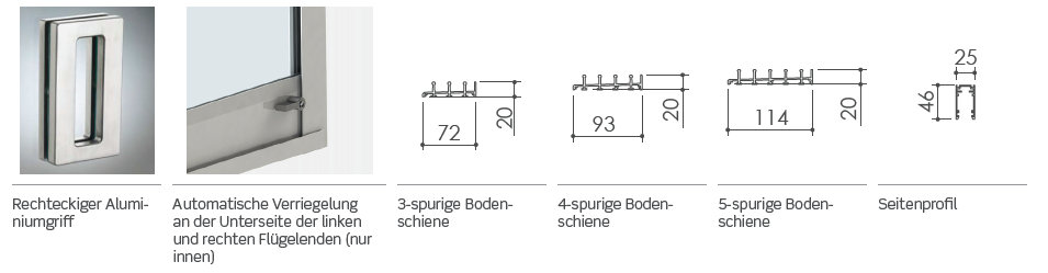 Diese Glas-Systeme mit Schiebeverschlusssystem vereint Eleganz und Schutz. Die bruch- und sturzsicheren Glasflügel bieten eine hohe Festigkeit und lassen sich dennoch mühelos bewegen. Sie laufen reibungslos parallel und können auf beiden Seiten der Schiene zusammengeschoben werden. Dank des innovativen, integrierten Kupplungsmechanismus öffnen und schließen sich die Flügel automatisch, was Funktionalität und Raffinesse in jedem Detail garantiert.
