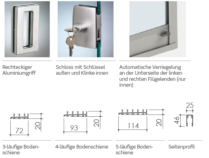 - Pflegeleichte, im Profil verborgene Edelstahlbeschläge