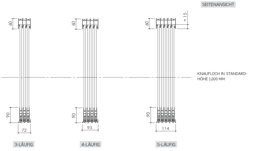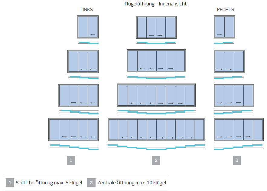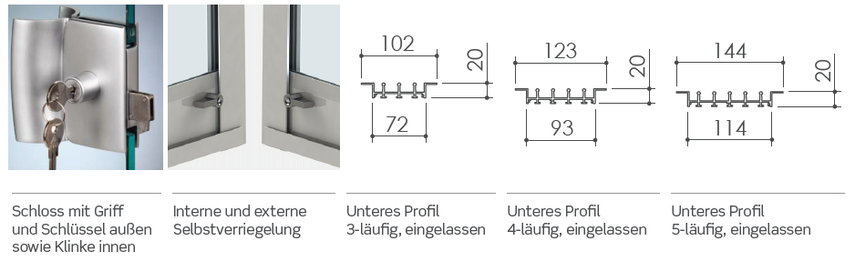 - Untere Flügelschienen mit Höhenausgleich von bis zu 5 mm