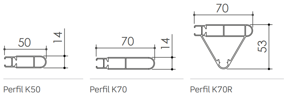 - con salientes de 90 y 100 cm, se entregará siempre con 5 perfiles y 4 segmentos;