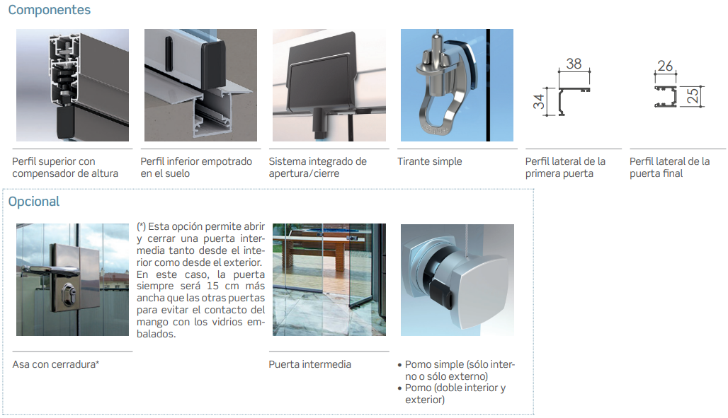 El más versátil de los sistemas de cierre, consistente en paneles deslizantes en vidrio templado con embalaje total, inclinable y sin juntas, para la máxima flexibilidad de uso. El deslizamiento tiene lugar en guías superiores de aluminio y guías inferiores superpuestas o empotradas en el suelo.